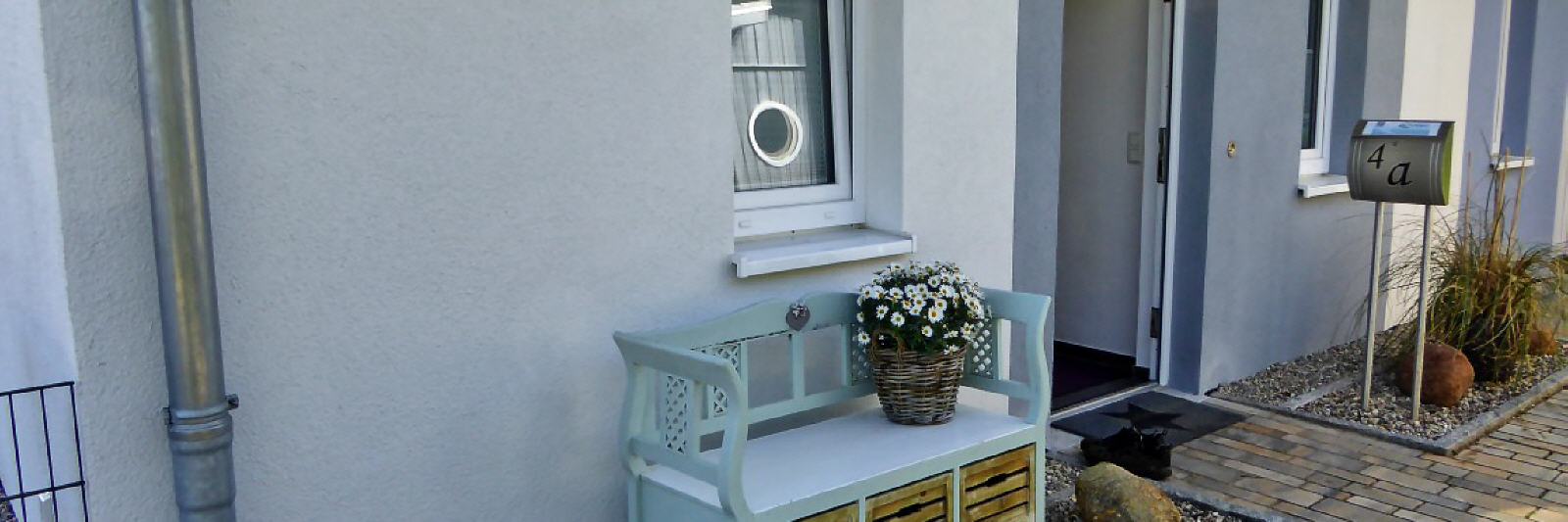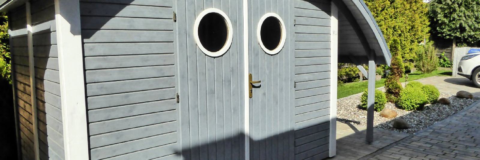 Zum Ferienhaus in Dahme gehört ein sehr schönes und maritimes Gartenhaus. In ihm befinden sich einerseits die üblichen Gartengeräte und für unsere Gäste: