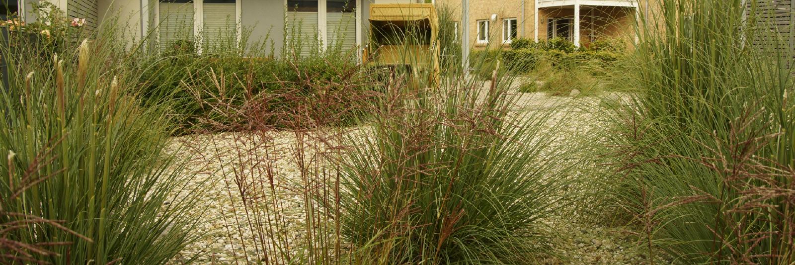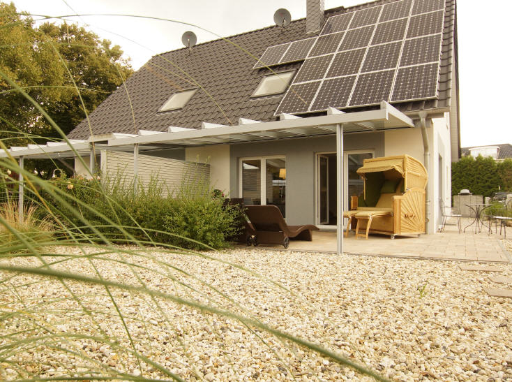 Der Garten rund ums Haus ist offen und nicht umzäunt.